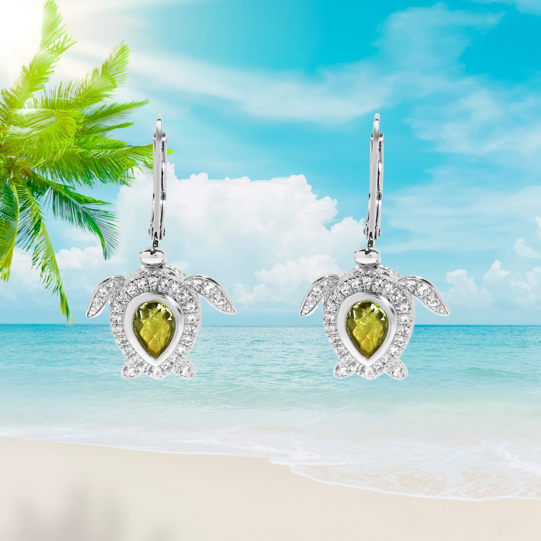 Sea Turtle Earrings Blue Topaz