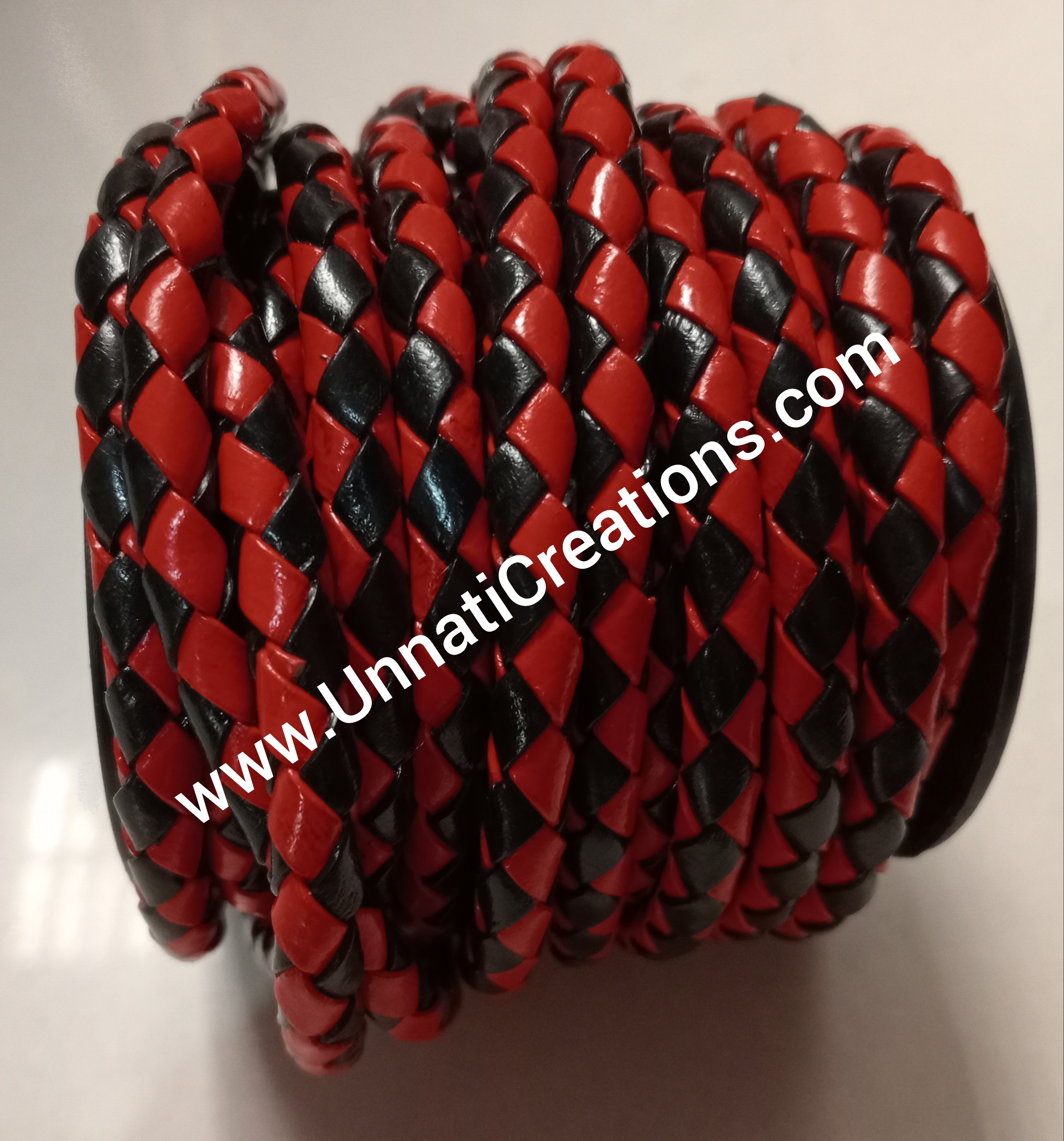 Braided Leather Cord Dual Color Red Black 50 Meter