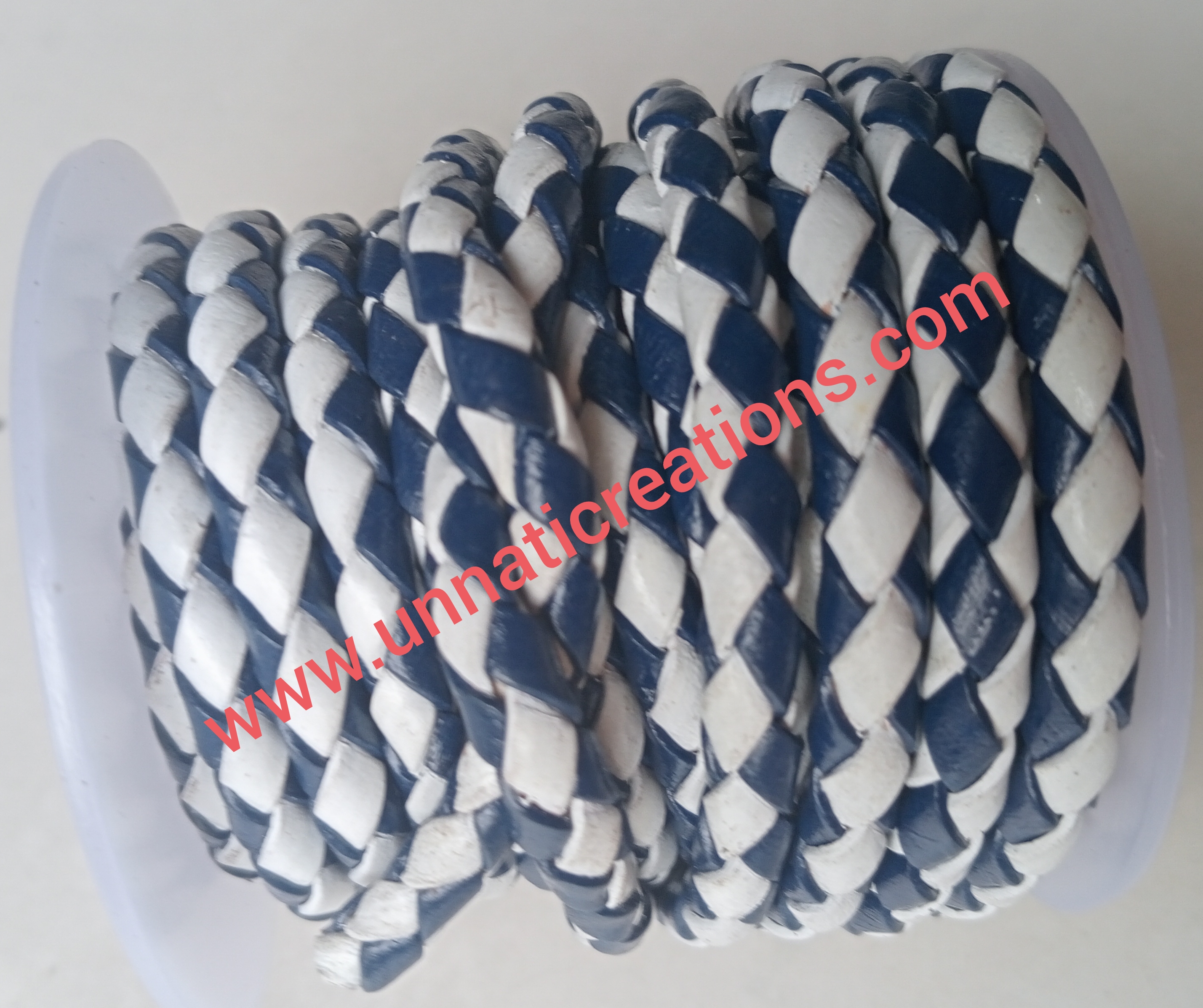 Braided Leather Cord Dual Color Blue White 50 Meter