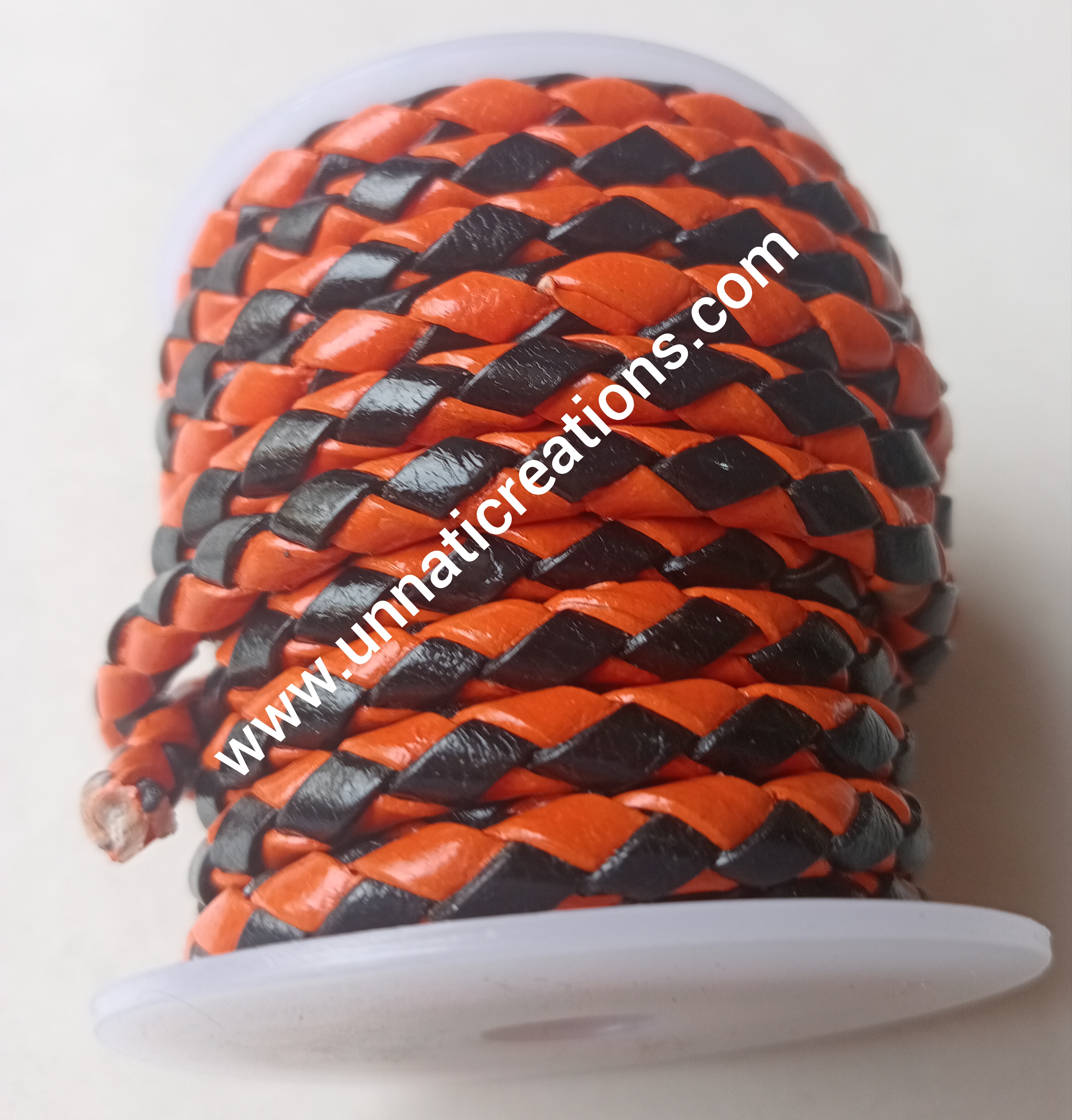 Braided Leather Cord Dual Color Orange Black 50 Meter