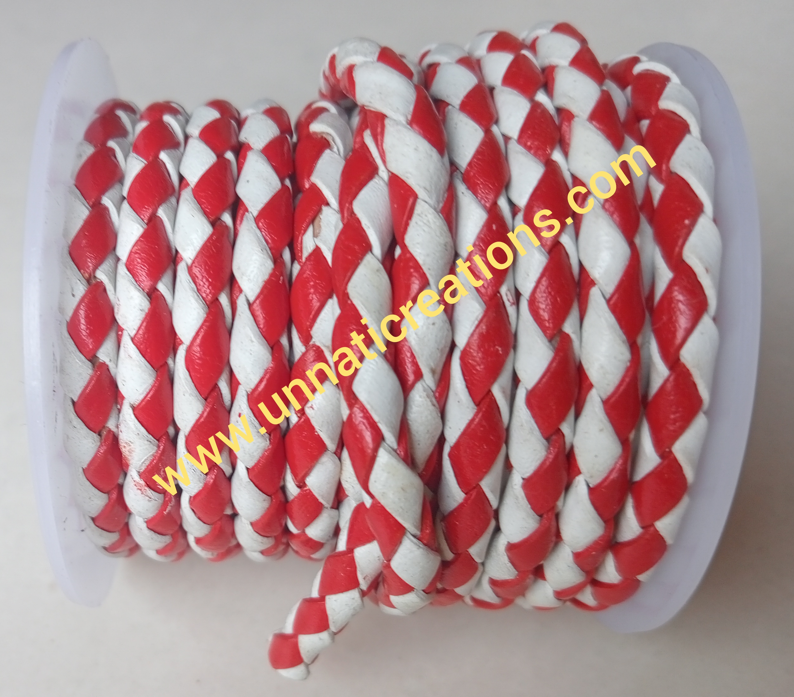 Braided Leather Cord Dual Color Red White 50 Meter