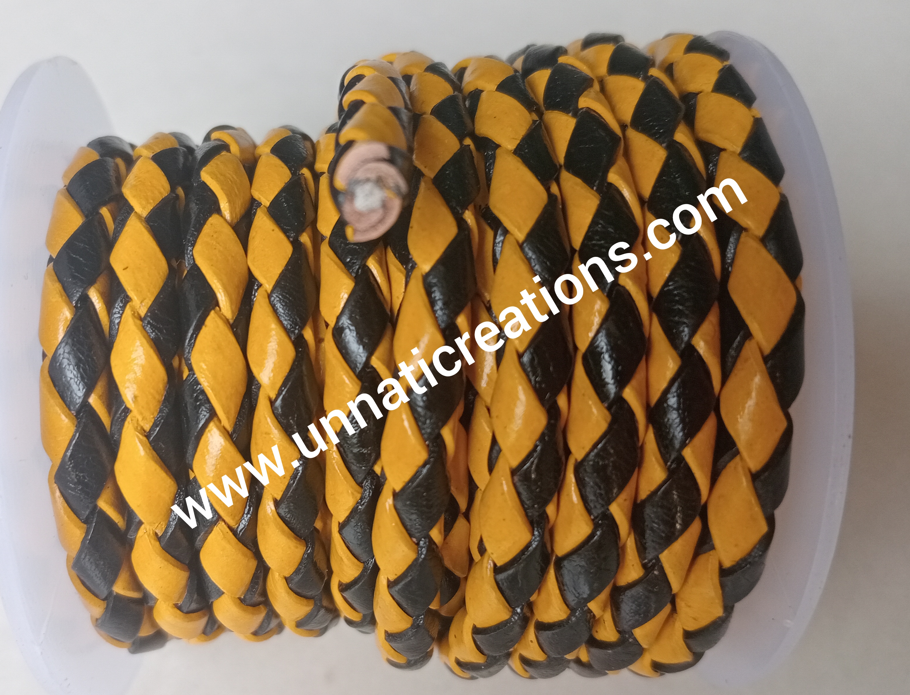 Braided Leather Cord Dual Color Yellow Black 50 Meter