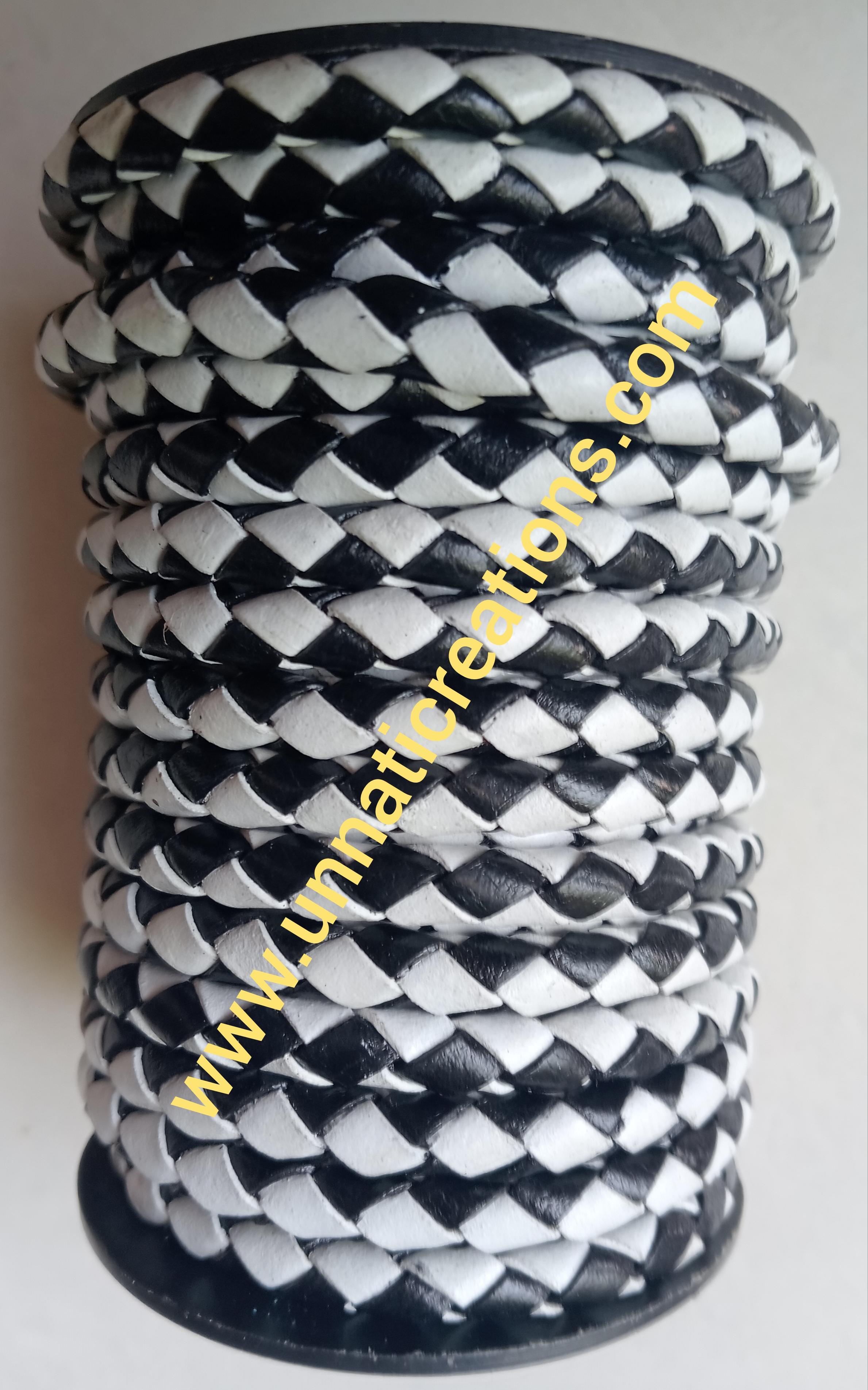 Braided Leather Cord Dual Color Black White 50 Meter
